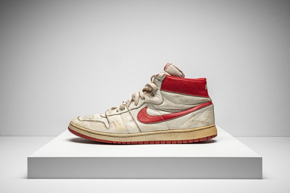 At a Sothebys auction that concluded Sunday morning the Air Jordan 1s were sold for 560000. A pair of Michael Jordans game-worn shoes from 1985 sold for more than three times the estimated auction price on Sunday breaking the world auction record for sneakers according to Sothebys.