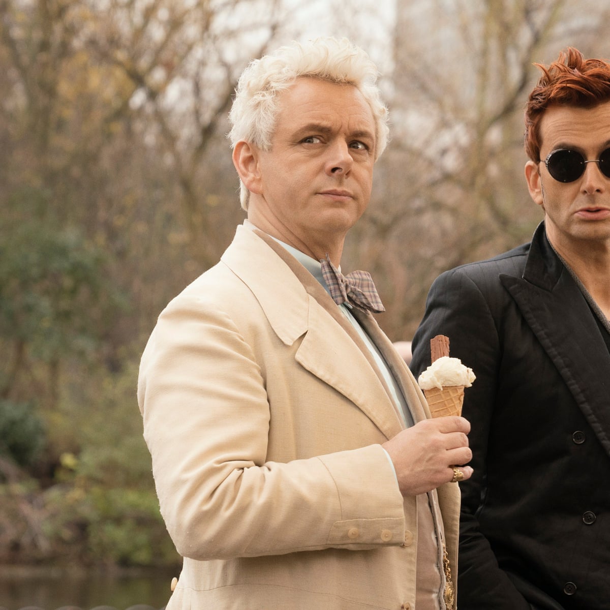 Based on the best-selling novel by Terry Pratchett and Neil Gaiman Good Omens follows an unlikely duo and their quest to save the world. Michael Sheen David Tennant and Jon. Aziraphale an angel and Crowley a demon agree to join forces to find the missing Anti-Christ and to stop the war that will end everything.